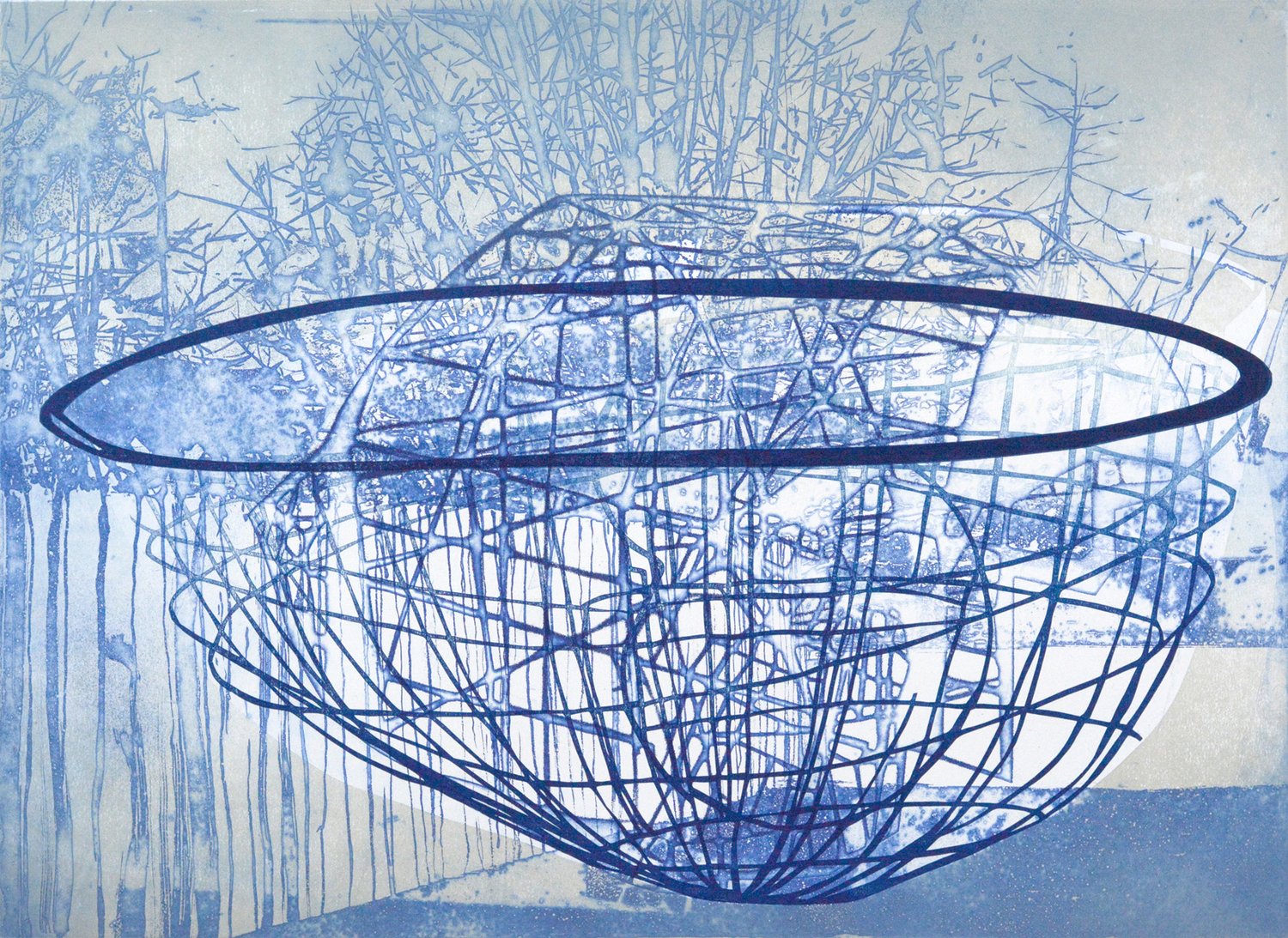 Starting from drawings, watercolours and maqueetes, the final prints evolve through the lengthy proofing process. Working intuitively and with a flexibility to her approach Katherine’s prints are built up through the collographic process.
